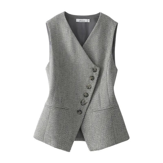 AanbiedingAmara | Grijs Gilet met Patroon en Knopen