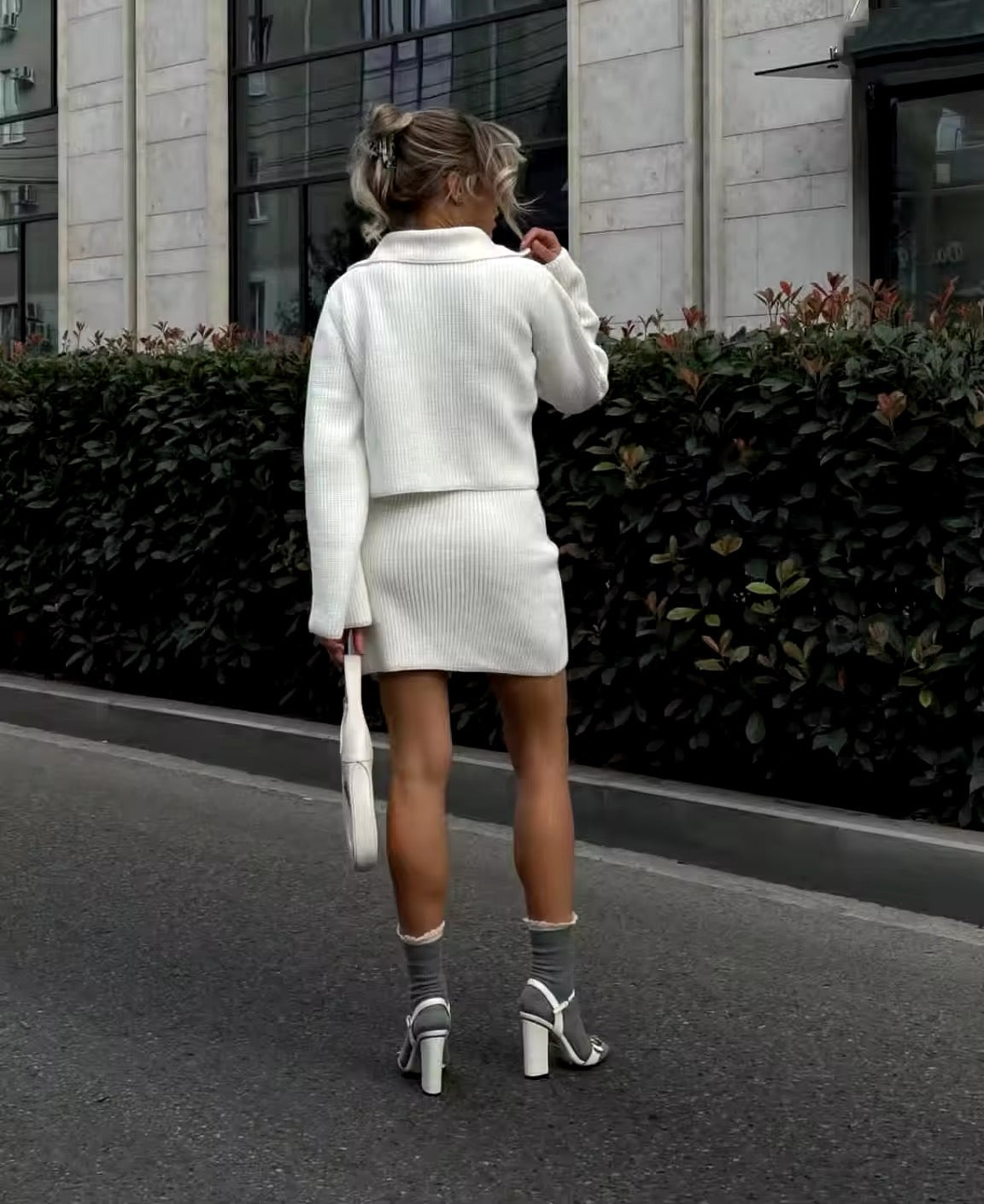 • Type: Twee-delige knit set – cardigan + rokje