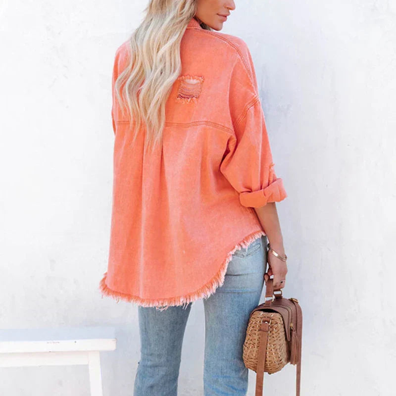 Op zoek naar een jas met karakter? De Noémie is een denim jack met een losse pasvorm en stoere scheurtjes. Dit jack heeft alles wat je nodig hebt voor een streetstyle look die comfortabel zit én opvalt. Perfect voor een vrije dag, citytrip of als extra laag op een frisse ochtend.